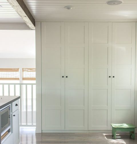 Nothing says “fancy” quite like a built-in pantry. These Bergsbo-style IKEA cabinets provide hidden storage in a space that was otherwise a bare wall without a purpose.